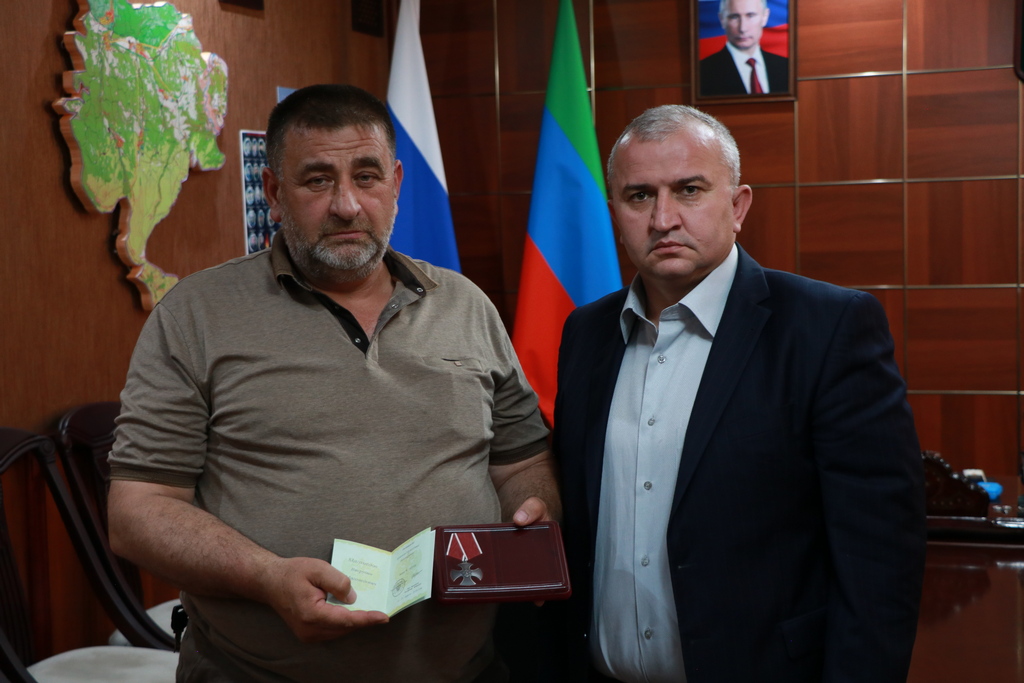 5 июня глава Казбековского района Гаджимурад Мусаев передал орден Мужества брату казбековского бойца Висрудина Магомедова из селения Гуни, героически погибшего при исполнении своего служебного долга в ходе специальной военной операции.