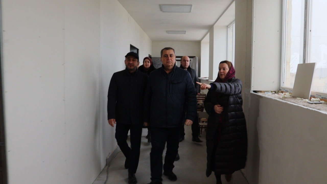 Глава Дербентского района провел инспекцию хода капитального ремонта детского сада «Ласточка» в селе Чинар