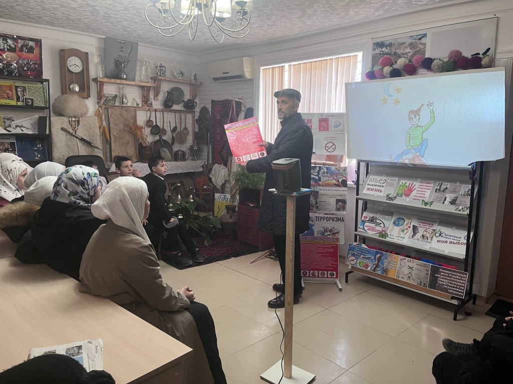 В ходе беседы с учащимися также были продемонстрированы видеоролик «Энергетики ведут к наркозависимости» и популярный в молодежной среде фильм студии ННТ Духовного управления мусульман РД «Закладчик».