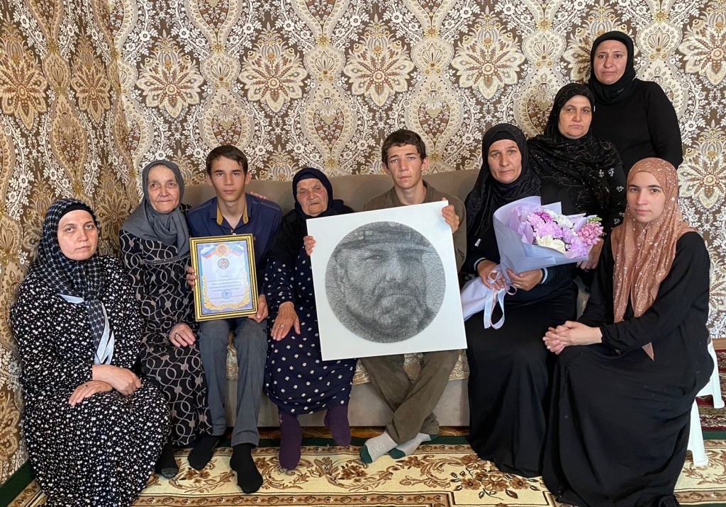Семье героя она вручила портрет Тагира, цветы от главы МР «Казбековский район» Гаджимурада Мусаева и благодарственное письмо за воспитание сына.