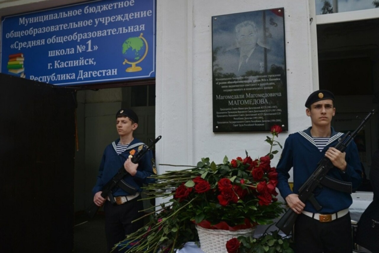 Сегодня, 15 мая, вице-спикер парламента Сайгидахмед Ахмедов и депутаты Народного Собрания РД принял участие в церемонии открытия мемориальной доски в честь Почетного Председателя Верховного Совета Дагестана, Героя труда Российской Федерации Магомедали Магомедовича Магомедова на здании школы №1 в городе Каспийске.