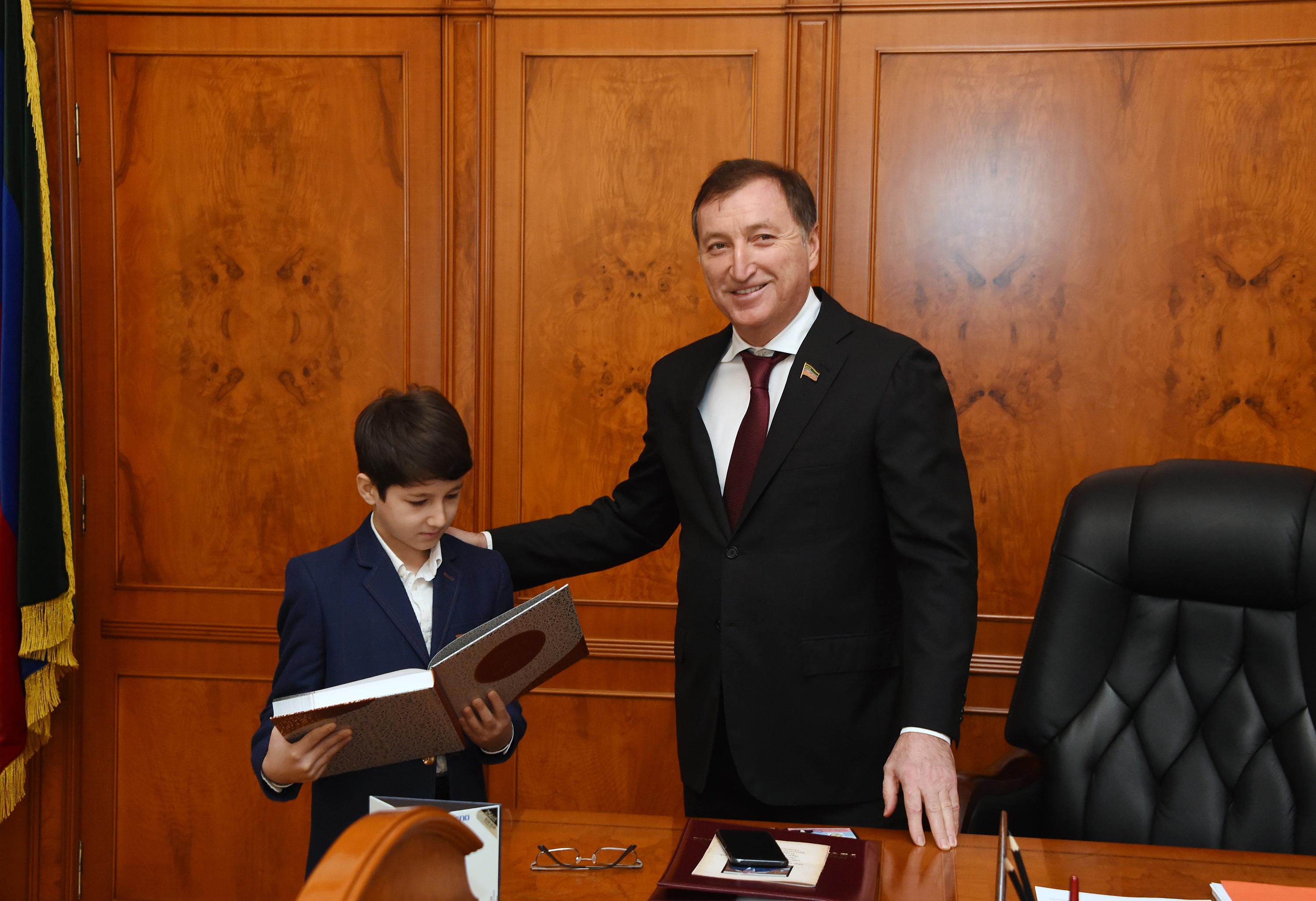 МАХАЧКАЛА, 28 февраля – РИА «Дагестан». Председатель Народного Собрания РД Заур Аскендеров пригласил юного Мухаммадкамиля Омарова в парламент республики, где он попробовал себя в роли депутата, сообщили в пресс-службе НС РД.