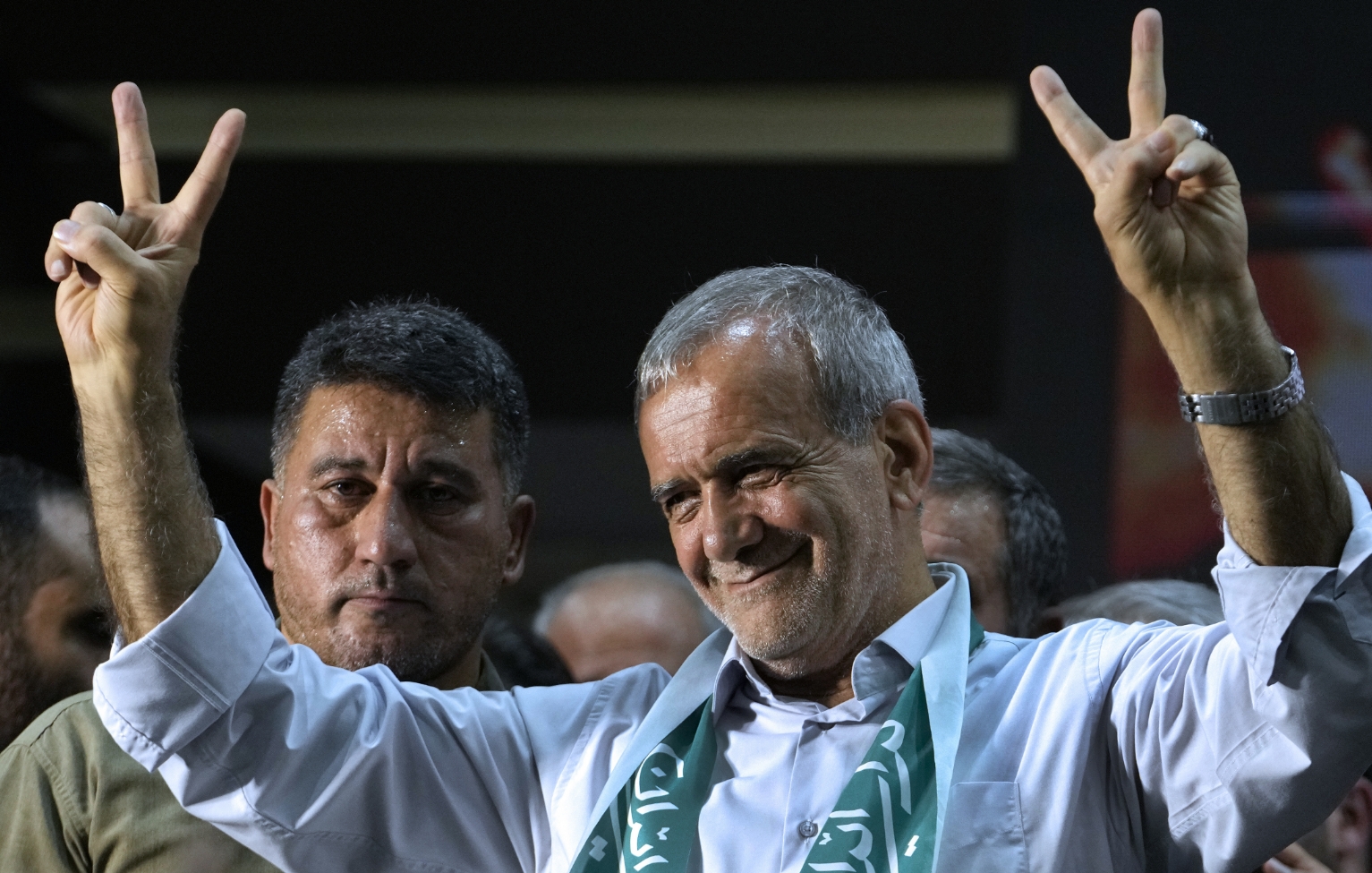 По итогам голосования победу одержал кандидат от крыла реформистов, бывший министр здравоохранения Пезешкиян, набрав 16,384 млн голосов - по меньшей мере 53,6% от общего числа. Его соперник консерватор Саид Джалили, представитель лидера Ирана в Высшем совете национальной безопасности республики, получил 13,538 млн голосов - 44,3%. Явка во втором туре составила около 49,8% . Автор: Фото: © AP Photo/ Vahid Salemi