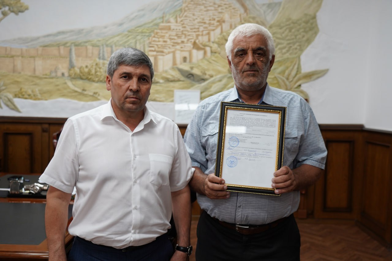 15 июля и.о. главы Дербента Ахмед Кулиев вручил сертификат на жилье участнику ликвидации аварии на Чернобыльской АЭС Джанлату Гамзатову и поздравил его с этим запоминающимся событием в жизни.
