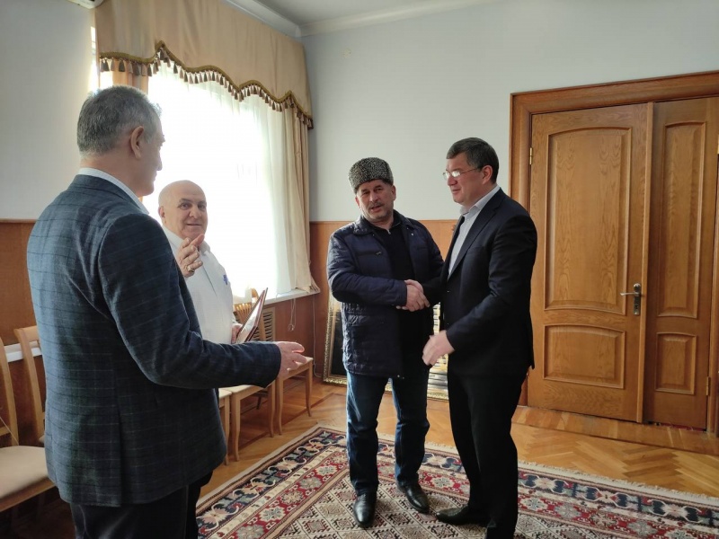 Сегодня, 30 января, в рабочем кабинете глава района Махмуд Амиралиев принял у себя автора рукописного Корана Сулеймена Аширлаева.