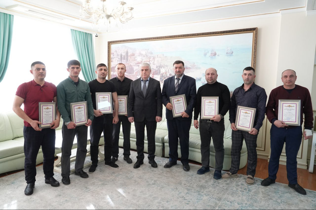 После приветствия военнослужащих глава администрации г. Махачкалы Юсуп Умавов вручил благодарственные письма участникам СВО.