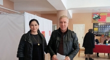 Молодая супружеская пара Даудовы Гаджимурад и Марина пришла на избирательный участок, чтобы исполнить свой гражданский долг У них 3 детей.