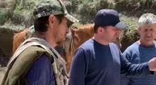 Работники сельского хозяйства Гумбетовского района во время перегона овец следили за оглашением Послания Главы РД