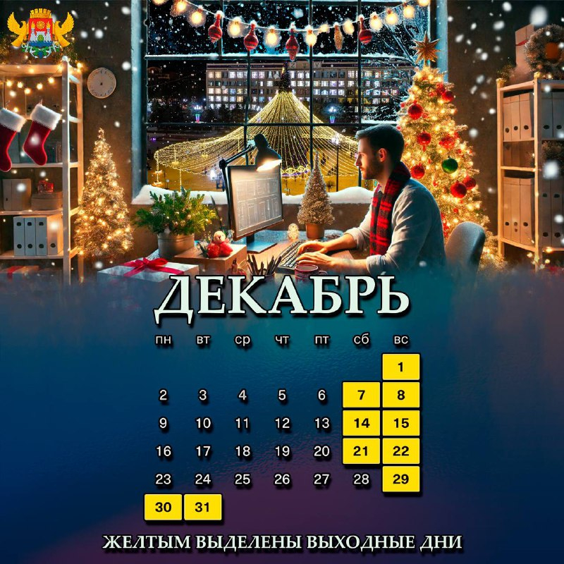 Рабочие дни – с 23 по 28 декабря. Выходной с субботы, 28 декабря, переносится на понедельник, 30 декабря.