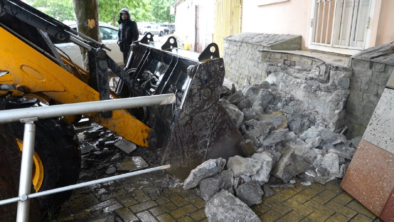 Сотрудниками Управления архитектуры и градостроительства администрации Махачкалы в рамках исполнения решения комиссии по демонтажу объектов капитального строительства, незаконно расположенных на муниципальной территории, проводился снос входных групп, расположенных на улице С. Стальского.