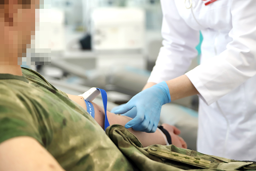 Перед донацией в обязательном порядке бойцы прошли медосмотр: им измерили давление, проверили содержание гемоглобина и других компонентов в крови.